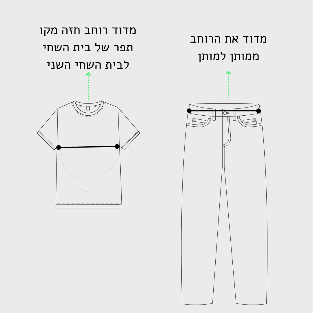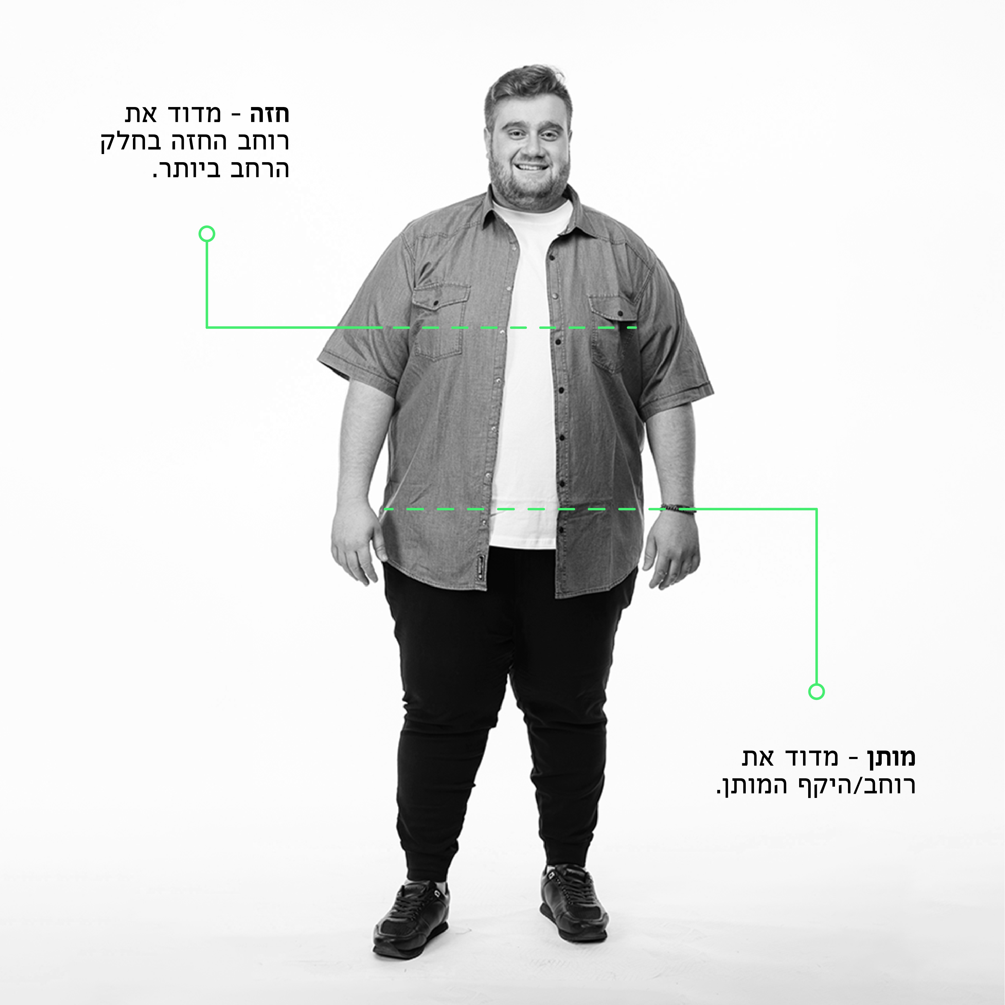 מומלץ למדוד את הבגדים עם סרט מדידה או מטר על מנת שתקבלו את המידה המדויקת עבורכם.