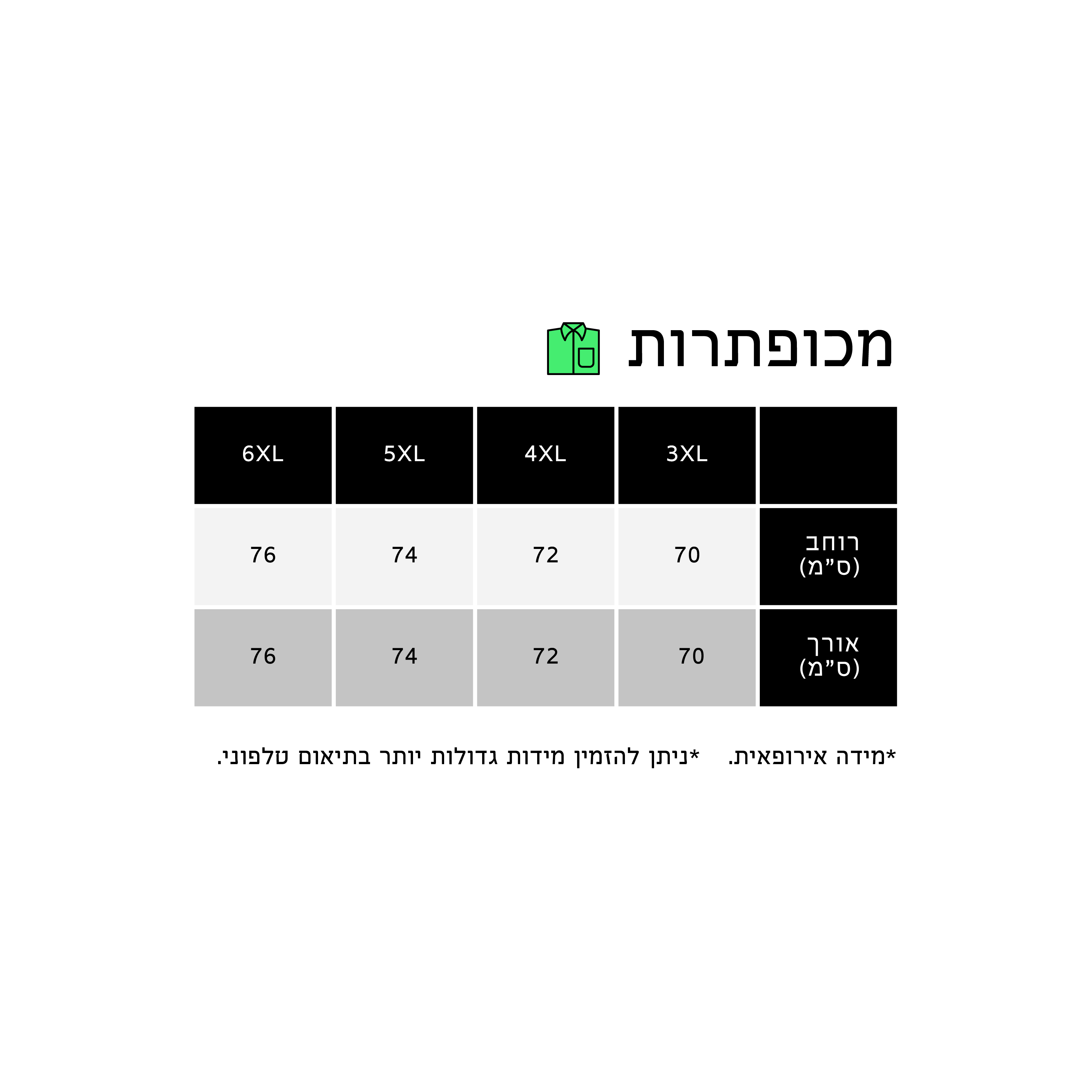 באיתך בגדול, תוכלו לשוחח עם נציג שירות בטלפון, על מנת למצוא יחדיו את המידה המתאימה ולסיים את ההזמנה בהצלחה!