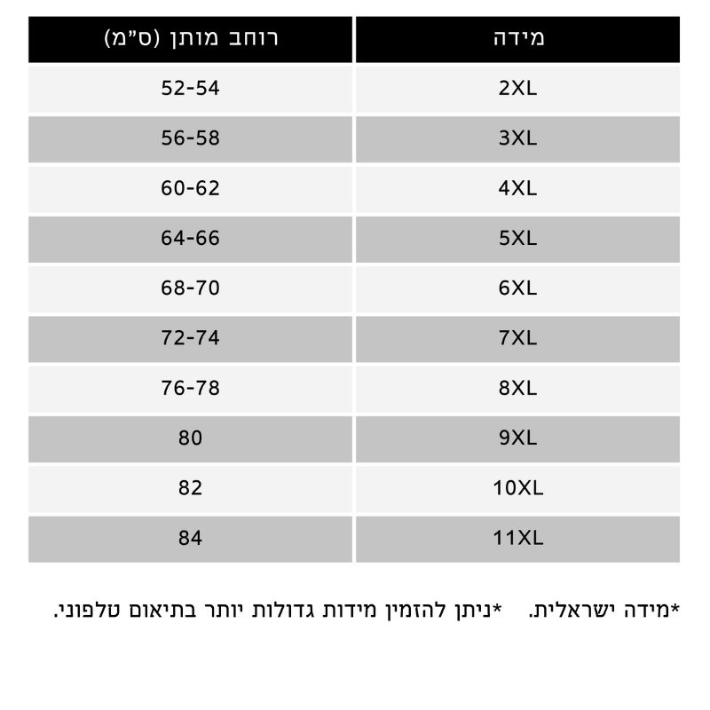 באיתך בגדול, תוכלו לשוחח עם נציג שירות בטלפון, על מנת למצוא יחדיו את המידה המתאימה ולסיים את ההזמנה בהצלחה!